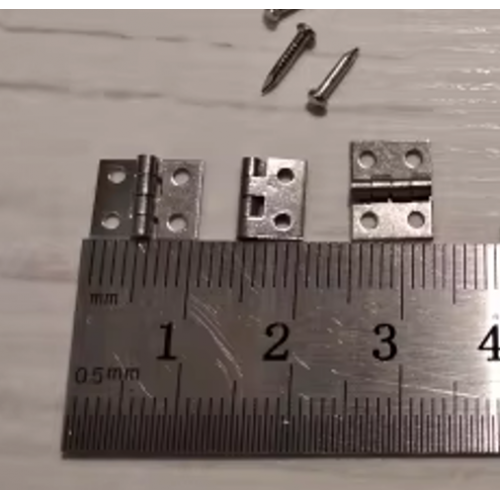 Мебельная петля - мизерная №1 (8мм*10мм), отлично подойдет для диорам и открывающихся элементов моделей. Материал: латунь. Меньшего размера я вообще не видел. Качество адекватное. Цена 15р/шт. - в обычных магазинах такой не найти.