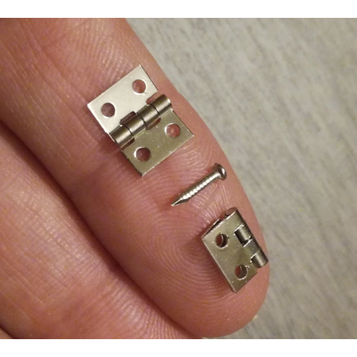 Мебельная петля - мизерная №2 (8мм*10мм), отлично подойдет для диорам и открывающихся элементов моделей. Материал - металл. Меньшего размера я вообще не видел. Качество адекватное. Цена 15р/шт. - в обычных магазинах такой не найти.